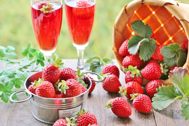 いちごワインはフルーツワインのひとつです。フルーツワインはぶどうからつくったワインに比べると渋みや苦味が少ないものが多く、くだもののジューシーさや甘みが強いのが特徴です。フルーツワインの作り方には2パターンあります。1つはぶどうをまったく使用せずに、ぶどう以外のフルーツを発酵させるものです。もうひとつはぶどうでつくったワインに、フルーツの果汁や果肉を加える方法です。